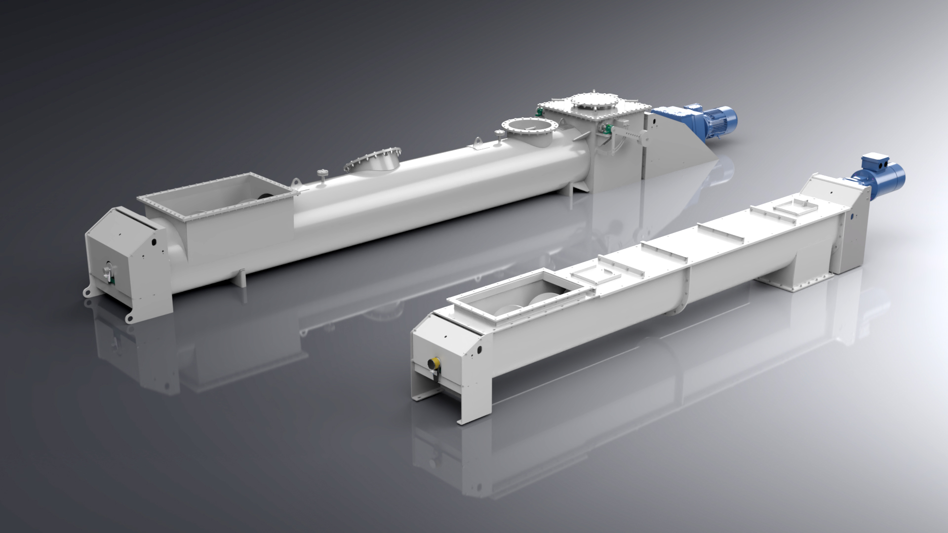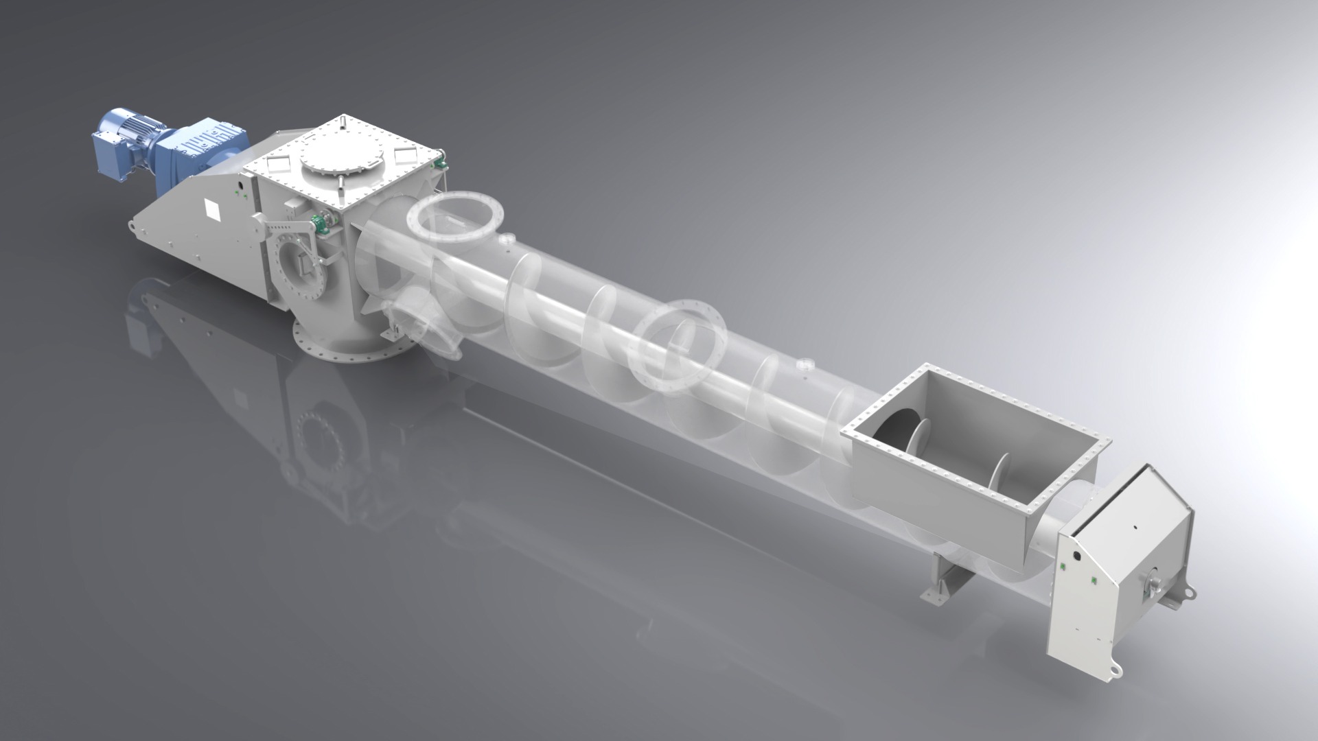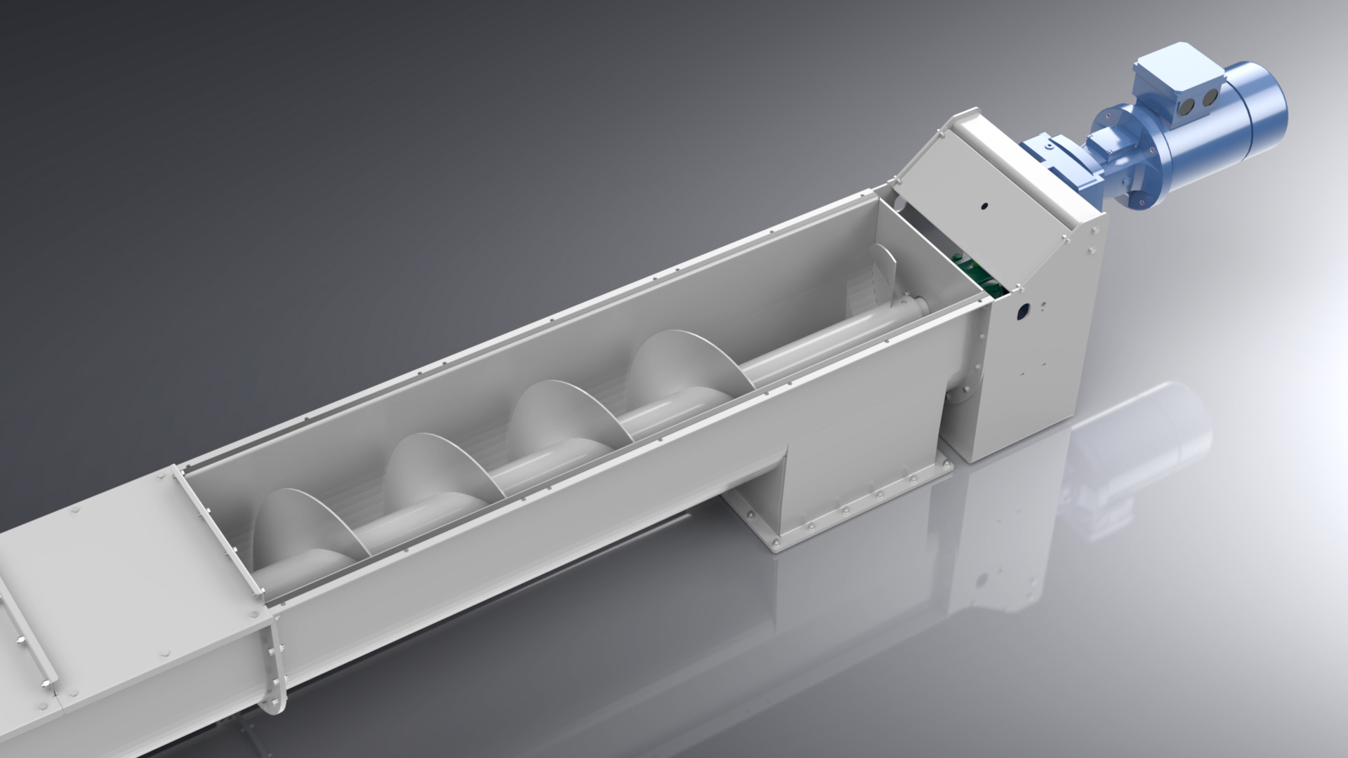 Das Gehäuse eines Schneckenförderers kann je nach Bedarf staubgeschützt, öldicht oder gasdicht ausgeführt sein. Es besteht aus lackiertem oder verzinktem Normalstahl oder Edelstahl.